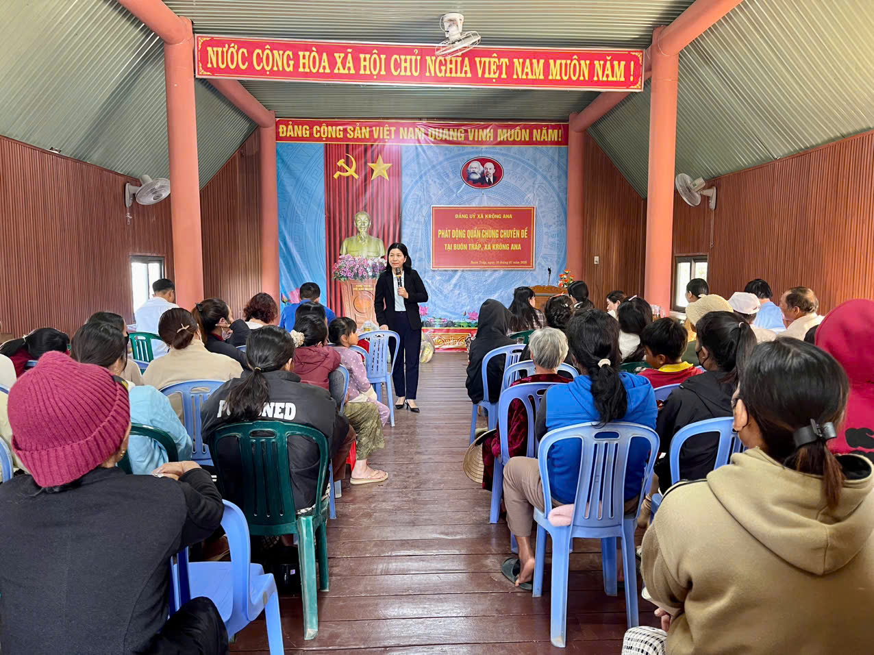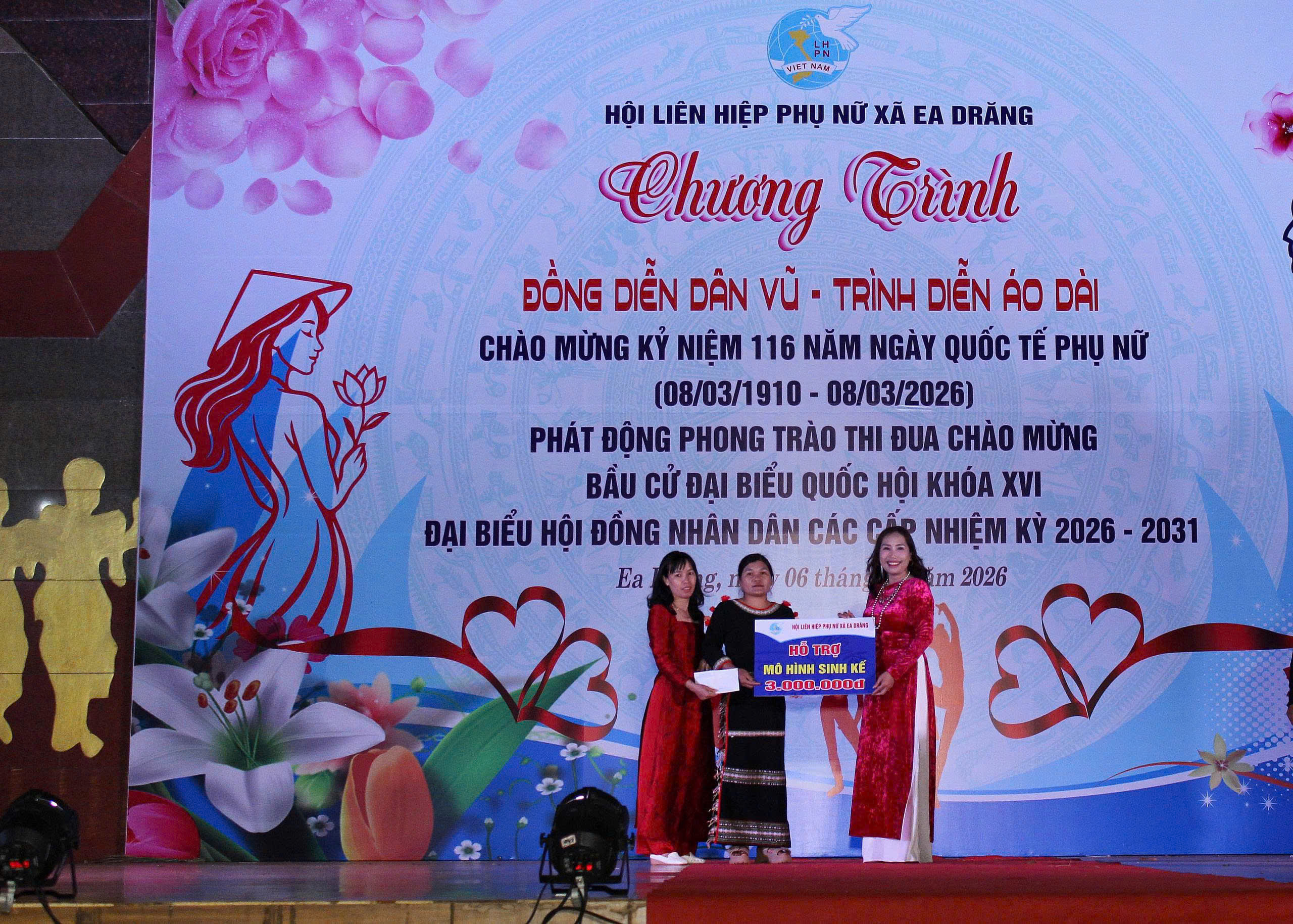 Không khí thi đua hướng về Ngày bầu cử còn lan tỏa mạnh mẽ tại nhiều địa phương trong tỉnh. Tại xã Ea Rốk, hội viên phụ nữ đã ra quân tổ chức nhiều hoạt động tuyên truyền, góp phần nâng cao nhận thức của người dân về ý nghĩa của cuộc bầu cử. Trong khi đó, Hội LHPN xã Ea Drăng đã phát động phong trào thi đua chào mừng Ngày bầu cử gắn với tổ chức đồng diễn áo dài, trao mô hình sinh kế cho hội viên phụ nữ khó khăn và tặng nhiều suất quà hỗ trợ hội viên trên địa bàn. Các hoạt động đã thu hút đông đảo hội viên phụ nữ tham gia, tạo khí thế thi đua sôi nổi trong cộng đồng.