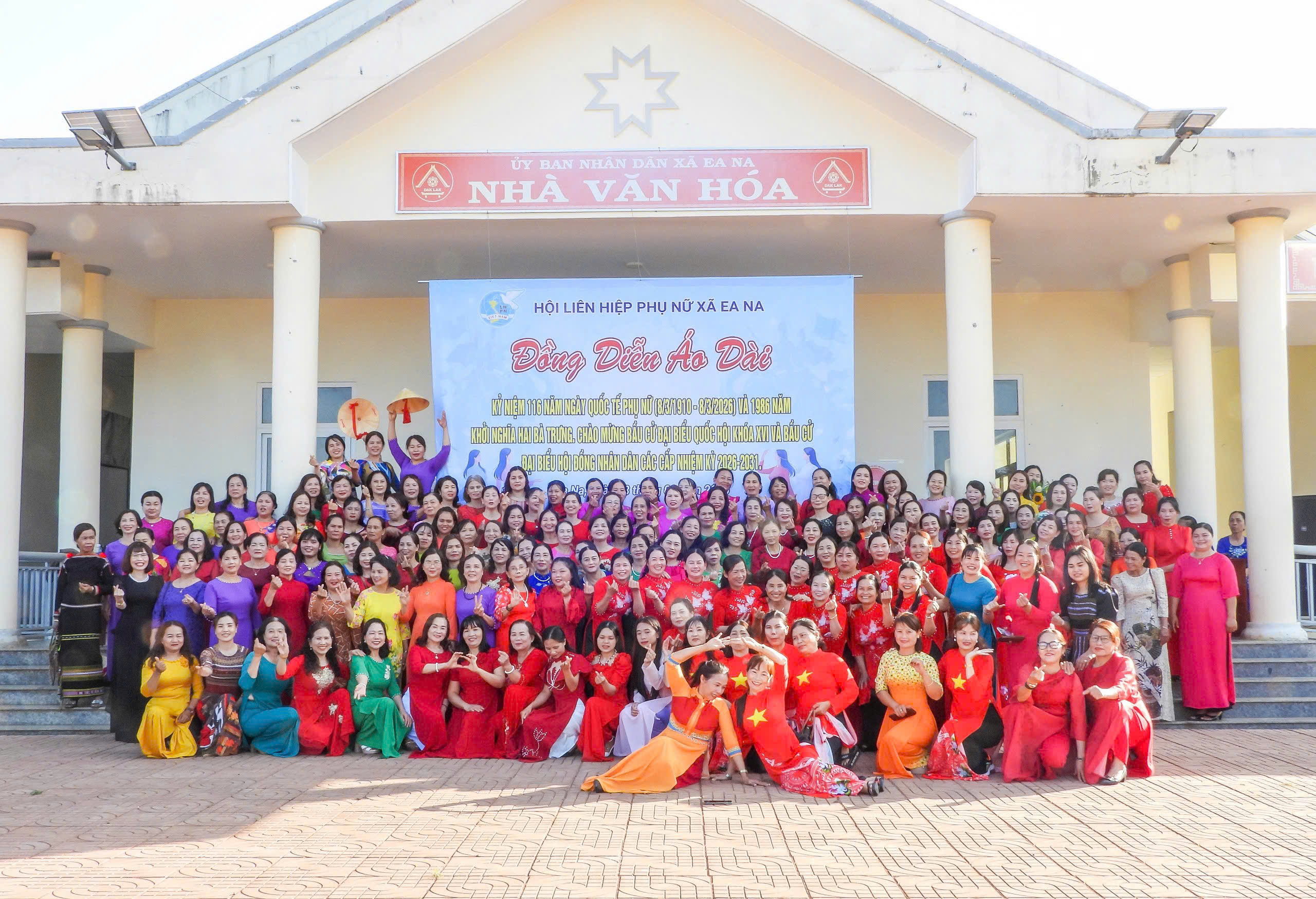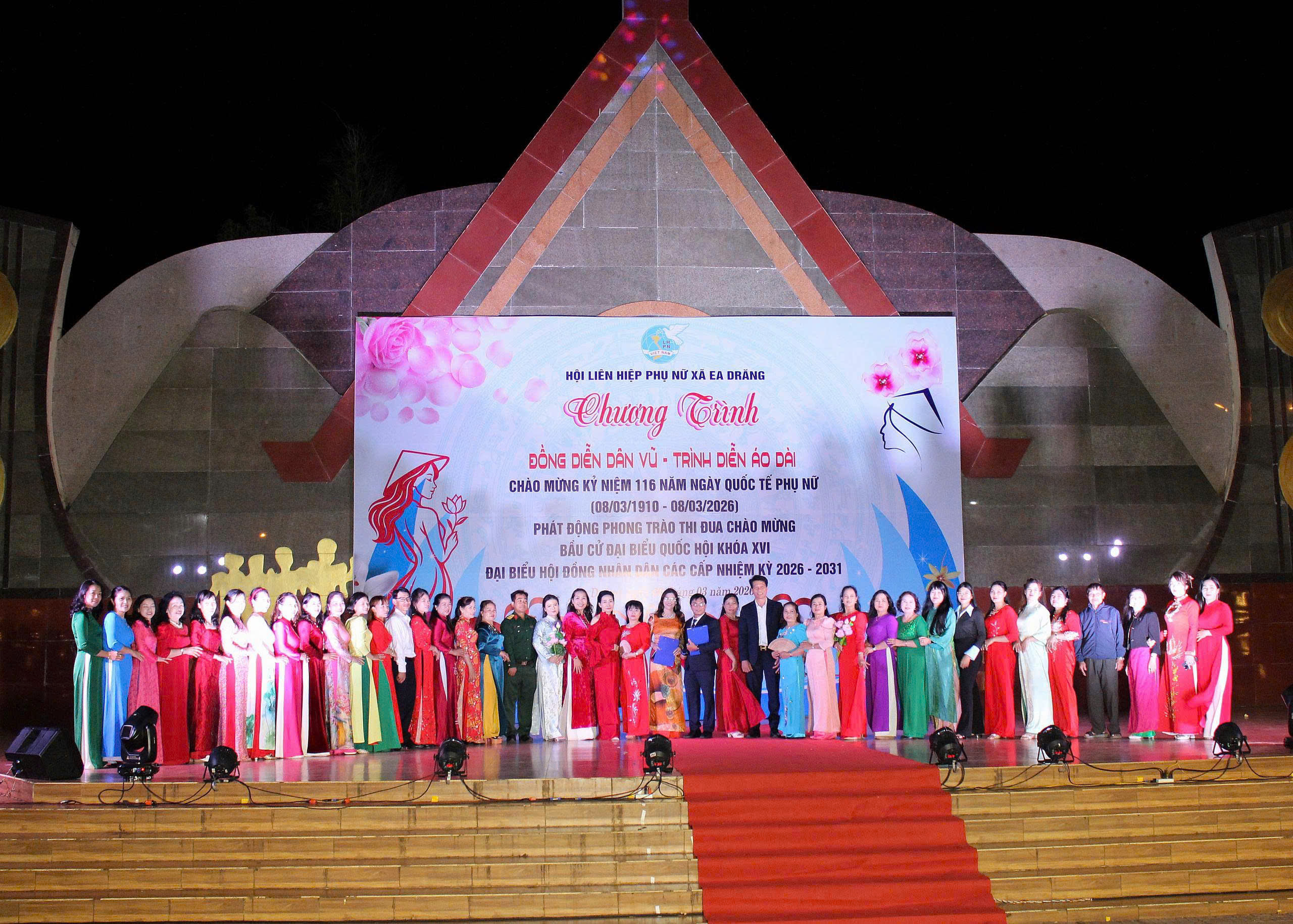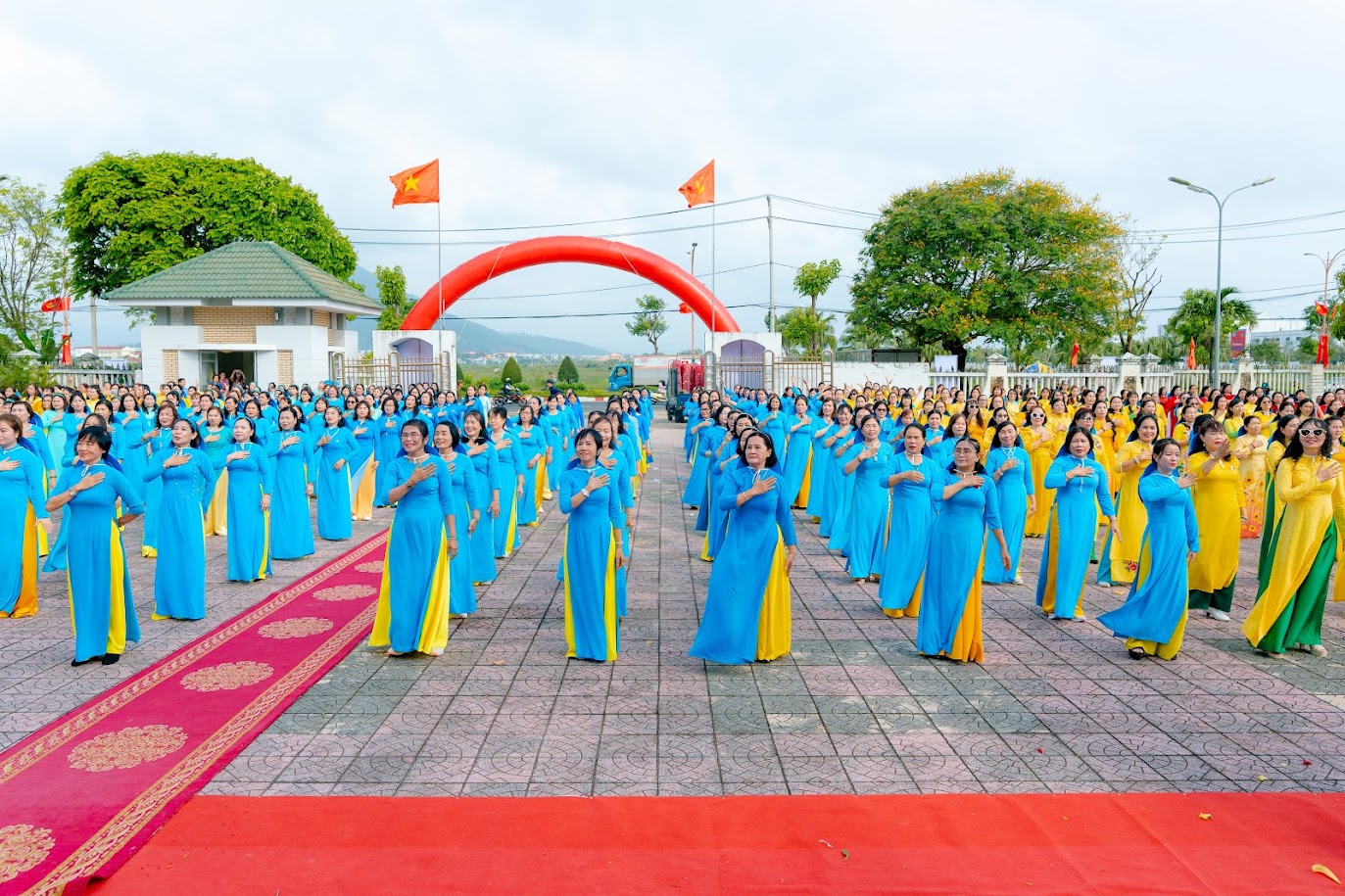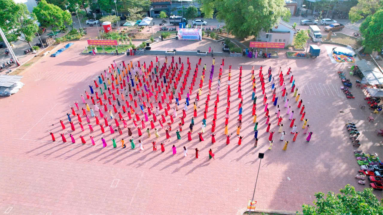 Chương trình đồng diễn áo dài và dân vũ tập thể do 500 cán bộ, hội viên phụ nữ thực hiện tại Lễ phát động phong trào “Tết trồng cây đời đời nhớ ơn Bác Hồ”, Năm thi đua 2026 và các hoạt động kỷ niệm 116 năm Ngày Quốc tế Phụ nữ do Hội LHPN tỉnh tổ chức tại Bảo tàng Phú Yên
